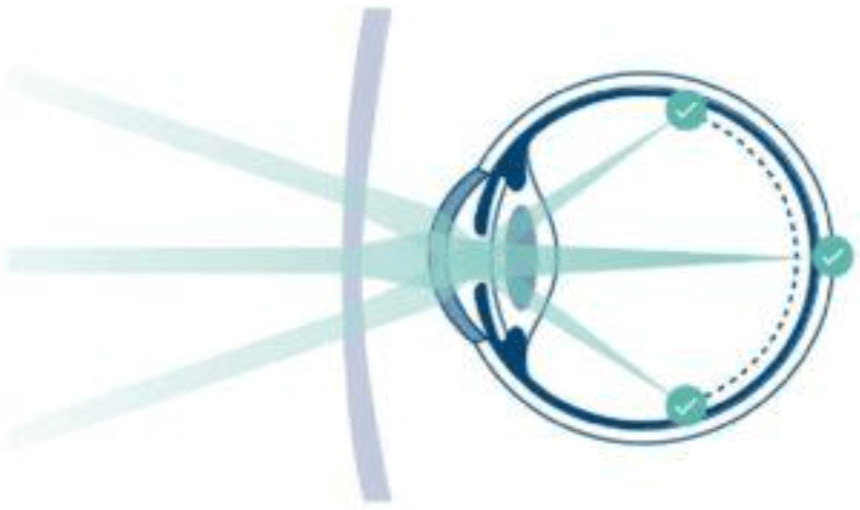 Los lentes monofocales normales hacen que la luz de la periferia incida detrás de la retina.
